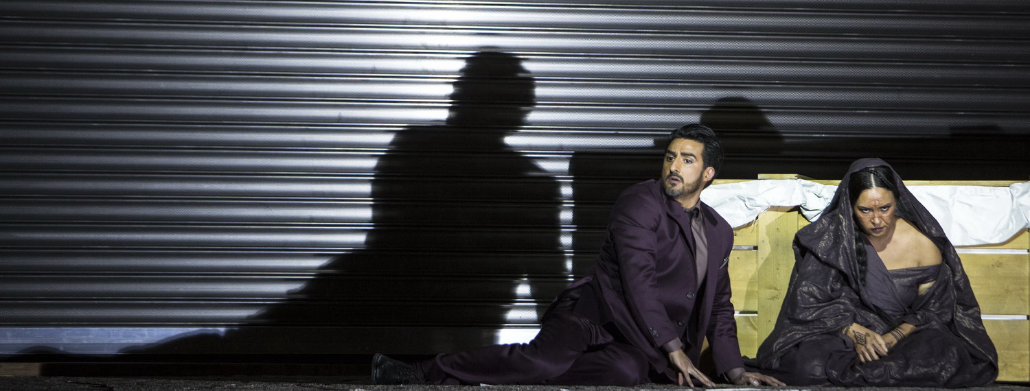Sie spielt in einem tristen Ambiente. In der sich drehenden, fensterlosen Lagerhalle mit Toren aus Metalllamellen, die Martin Zehetgruber konzipiert hat, stehen eine kopflose Pferdestatue und viele Kisten. Sie enthalten, so ist es im Programmheft nachzulesen, Raubkunst, wozu auch das Goldene Vlies gehört. Auch haben wir es mit einem Flüchtlingsschicksal zu tun, weshalb Médée, dunkel geschminkt und mit wirren schwarzen Haaren, in einem archaischen Schlabbergewand erscheint. Es ist auf einer Seite schulterfrei und lässt durch einen Schlitz viel Bein sehen – vielleicht spielt die Kostümbildnerin Carla Teti mit diesem Schnitt auf Médées frühere Verführungskünste an. Das Volk von Korinth ist natürlich in moderne Anzüge gekleidet, bevorzugt in dunkler Farbe. Wobei der von Martin Wright einstudierte Staatsopernchor meist ins Off verbannt ist, von dort aus aber mit gewohnter Klangkultur singt.
