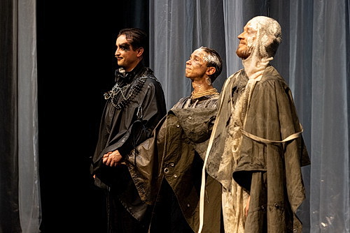 Die drei etwa halbstündigen Werke werden von einem professionellen Team inszeniert und von der Opernklasse und Kammerensembles der Hochschule aufgeführt. Thomas Gabrisch hat sich um die musikalische Einstudierung gekümmert. Als Regisseurin steht Hanna Werth vor der anspruchsvollen Aufgabe, drei vollständig unterschiedliche Herangehensweisen zu meistern. Ist es im ersten Stück noch der eher konventionelle Zugang auf der Basis eines Abenteuerromans, wird es in der Mitte schon beinahe surreal und am Schluss spart der Komponist am Text. Um es vorwegzunehmen: Werth löst das vorzüglich. Saskia Hulte schafft für alle drei Werke ein großartiges Bühnenbild, bei dem das Orchester stets auf der rechten Bühnenhälfte bleibt, während mit einfachen Mitteln, dem Einsatz von Plastikbahnen und Holzkisten, wunderbar fantasievolle Bilder entstehen. Großartig hat Bee Hartmann die Kostüme entworfen. Da fällt einem statt des Begriffs des Kostümbildners eher der des Modedesigners ein. Christian Lacroix oder Arthur Arbesser kommen einem da in den Sinn. Unbedingt erwähnenswert auch Maskenbildner Matthias Butt, der mit kräftigen Farbstrichen auch vor den Haaren nicht zurückschreckt. Da braucht man nicht herumzureden: Das Team könnte sich auf jeder Opernbühne seine Meriten verdienen.