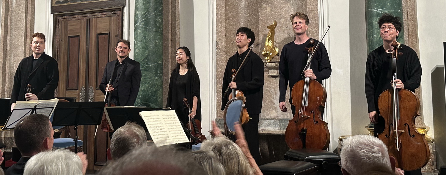 Das Leonkoro Quartet, ein Streichquartett der absoluten Extraklasse, eröffnet mit ambitionierten Programmen an zwei Abenden. Die vier Musiker spielen erst seit 2019 zusammen, sind zwischen 26 und 29 Jahren alt und entfachen im vollbesetzten Saal ein wahrhaftes Feuerwerk, das an Intensität kaum zu überbieten ist. Das Quartett ist mit zahlreichen internationalen Preisen und Ehrungen ausgezeichnet und befindet sich schon mehr als am Anfang einer Weltkarriere.
