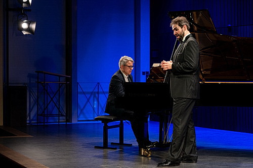 Ein Vorkonzert soll Appetit machen auf Kommendes, so gedacht als Auftakt zum siebten Festival Lied in Würzburg. Weil aber der vorgesehene Sänger Johannes Martin Kränzle wegen Erkrankung absagen muss, wird er nun bestens vertreten durch den Schweizer Bariton Manuel Walser. Der bringt ein reines Schubert-Programm unter dem Titel Sehnsucht mit. Das passt zu diesem Termin irgendwie, an dem der Krieg im Nahen Osten zwischen dem Iran und den USA beginnt, denn die Sehnsucht nach Frieden prägt den Abend, wie einige Besucher anmerken. Zwar beschäftigen sich die vierzehn Lieder inhaltlich mit inneren Konflikten, mit zwiespältigen Gefühlen, aber sie münden schließlich in den Wunsch nach Ruhe und Erlösung von allen Verunsicherungen.